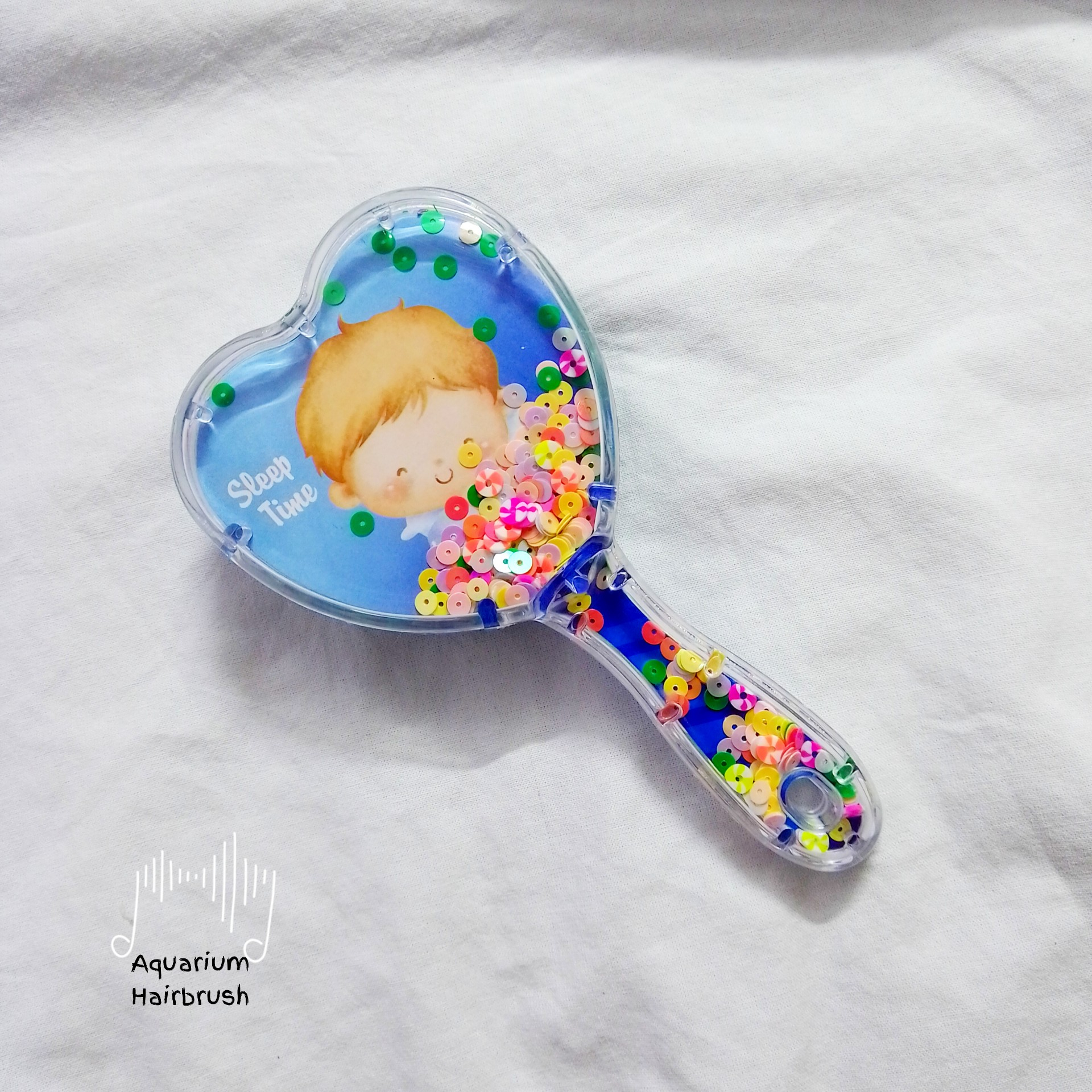 برس های آکواریومی جذاب هستند . از این جهت که طرح های شاد و انرژیکی دارند و درون آنها شن هایی به طرح قلب و یا سایر اشکال وجود دارند که درون آن را زیباتر می کنند. برس مو مدل آکواریومی طرح وقت خواب یک برس گرد و با طرح گاو است که پشت و قسمت جلویی بدنه بصورت آکواریومی طراحی شده است.
