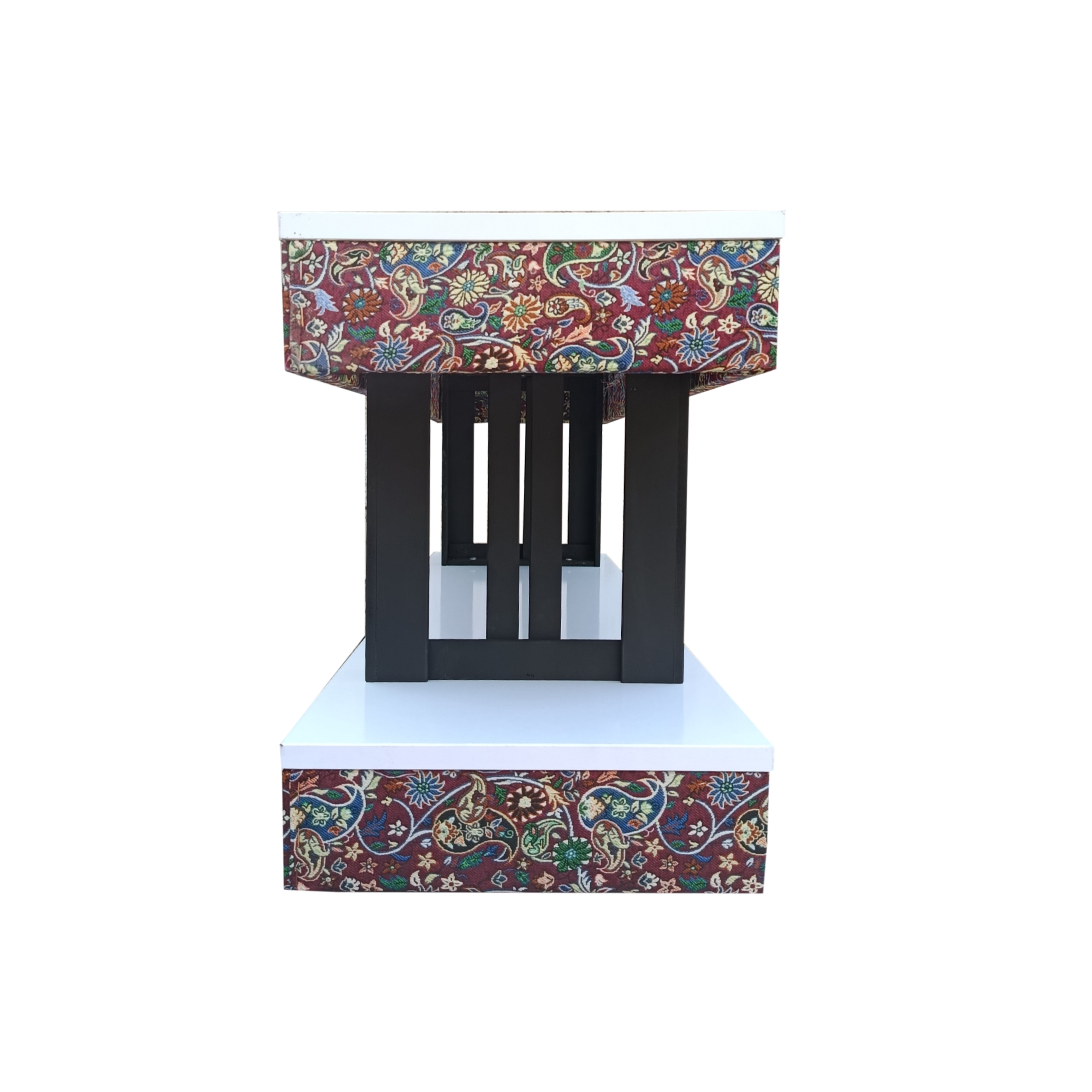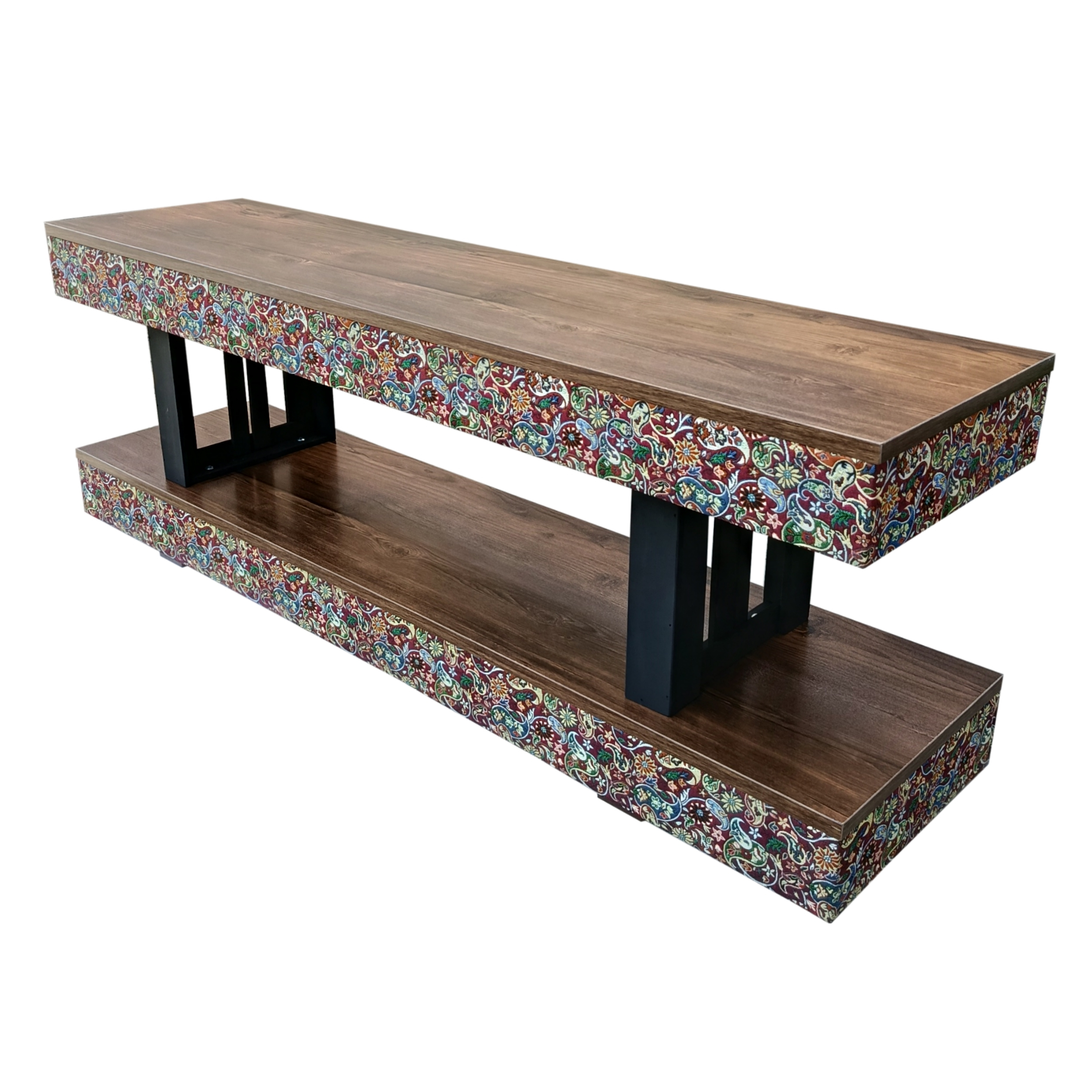 میز تلویزیون یکی از نیازهای هر خانه برای قرار گرفتن تلویزیون و وسایل مرتبط با آن بر روی آن می باشد. قیمت مناسب, وزن کم, طراحی زیبا و استحکام مناسب از ویژگی های این میز تلویزیون است. استفاده از پارچه زیبای ترمه در بدنه این میز, زیبایی خاصی به آن داده است.
