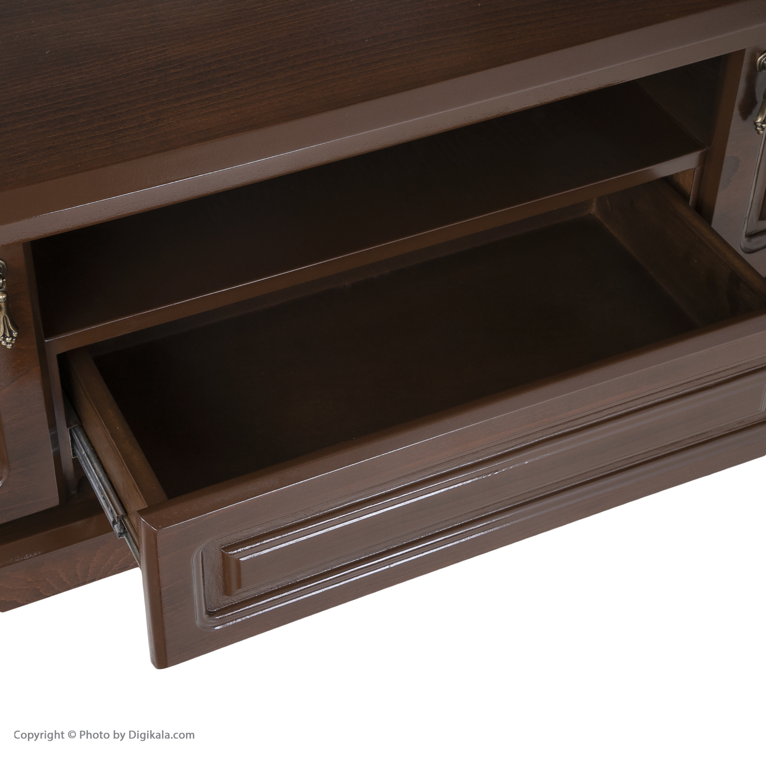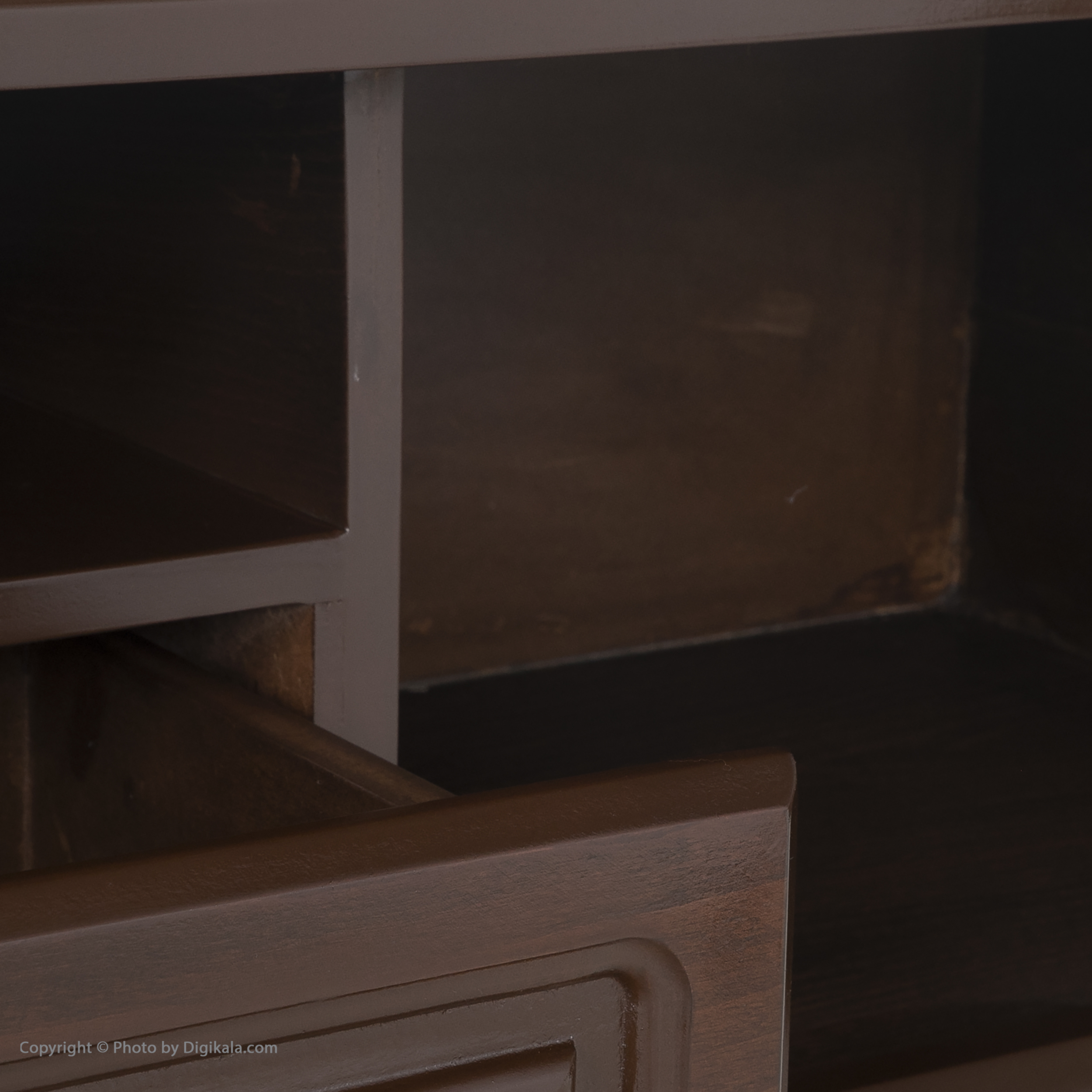 قرارگرفتن میز تلویزیون در سالن پذیرایی یا سالن نشیمن در منزل مسکونی میتواند دکوری زیبا را ایجاد کند. ازاینرو چند عامل برای انتخاب میز تلویزیون اهمیت دارد که شامل جنس بدنه، جنس رویه، اندازه سطح و طراحی آن است. طراحی میز بسیار جذاب و به شکل چوب طبیعی است که در واقع این ویژگی به دلیل استفاده از روکش چوب طبیعی راش خواهد بود. جنس بدنه بهصورت غالب از MDF ساخته شده است؛ این ویژگی باعث افزایش مقاومت و طول عمر بیشتر میز تلویزیون خواهد شد. MDF از انواع چوبی است که نسبت به سایر جنسها مثل نئوپان یا لترون، از مقاومت و استحکام بیشتری برخوردار است. قرارگرفتن کشو در زیر تلویزیونی باعث میشود دستهبندی بهتری نسبت به لوازم داشته باشید و بتوانید لوازمی مثل کنترل یا کابل را در آن قرار دهید. ریل کشو بهصورت سه زمانه است و بهآرامی باز یا بسته میشود.