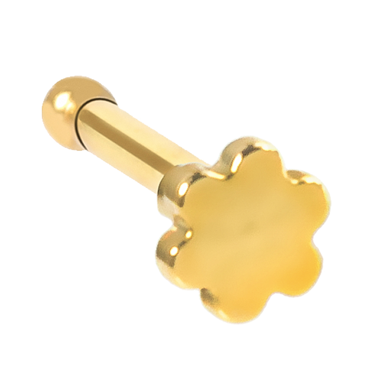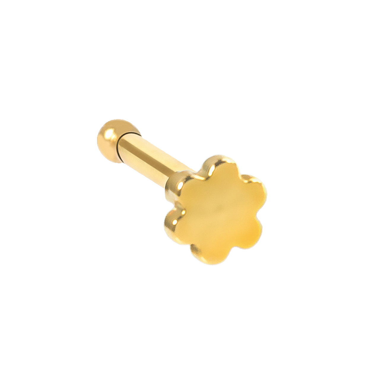 پیرسینگ بینی و لب اقلیمه کد HS52 از جنس استیل طلایی با پلاک گل بسیار ظریف به قطر ۰،۲ سانتیمتر و طول کل پیرسینگ ۰،۹ سانتیمتر می باشد. پیرسینگ به دلیل وجود گوی گرد انتهای میله با اندکی فشار از سوراخ روی پوست عبور کرده و در جایش ثابت خواهد ماند. این پیرسینگ از جنس استیل با کیفیت ساخته شده است.